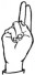 На ћирилици написано БЛАЖА СИМЕУНОВИЋ састоји се из 15 слова [?]. Исписано ћириличном једноручном азбуком за глувонеме: